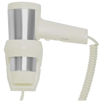 Фен произведен из антисептического высококачественного пластика. Простой и элегантный внешний вид подходит под интерьер любого отеля;
