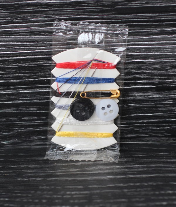Комплектуя номера отеля товарами для гостиниц, не забудьте включить в ассортимент швейный набор. Он поможет в мелком ремонте одежды. Досадная неприятность может случиться с каждым из нас. Вашему постояльцу будет приятно обнаружить спасительный швейный набор в тумбочке. Включив швейный набор в состав товаров для гостиниц, вы, может быть, спасёте не только честь постояльца, но и важную сделку, для которой он посетил ваш город. Входящие в набор нитки можно подобрать под цвет ремонтируемой одежды, так что шов останется незаметным. Потерявшуюся пуговицу также можно заменить пуговицей из набора. Булавка же поможет без труда вставить шнурок или резинку в кулиску.