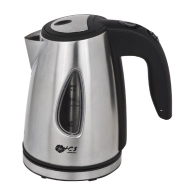 Чайник с VDE разъемом. Нержавеющая сталь. Основание чайника встроено в поднос.