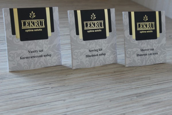 Комплектуя номера отеля товарами для гостиниц, не забудьте включить в ассортимент швейный набор. Он поможет в мелком ремонте одежды. Досадная неприятность может случиться с каждым из нас. Вашему постояльцу будет приятно обнаружить спасительный швейный набор в тумбочке. Включив швейный набор в состав товаров для гостиниц, вы, может быть, спасёте не только честь постояльца, но и важную сделку, для которой он посетил ваш город. Входящие в набор нитки можно подобрать под цвет ремонтируемой одежды, так что шов останется незаметным. Потерявшуюся пуговицу также можно заменить пуговицей из набора. Булавка же поможет без труда вставить шнурок или резинку в кулиску.