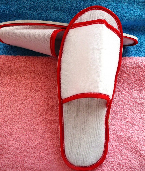 Тапочки махровые, окантовка красная, подошва 5 мм.