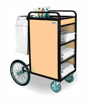 Тележка для горничной универсальная с полками из МДФ на велосипедных колесах, ТГ 11.1
