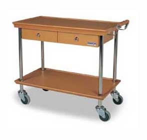 Тележка сервировочная, с полками из МДФ, зеркальные ножки, выдвижные ящики.