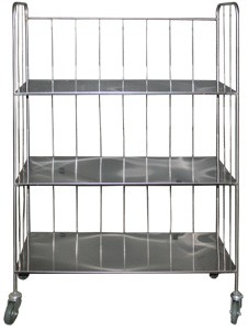 Тележка-стеллаж для хранения и транспортировки белья с 3-мя полками.