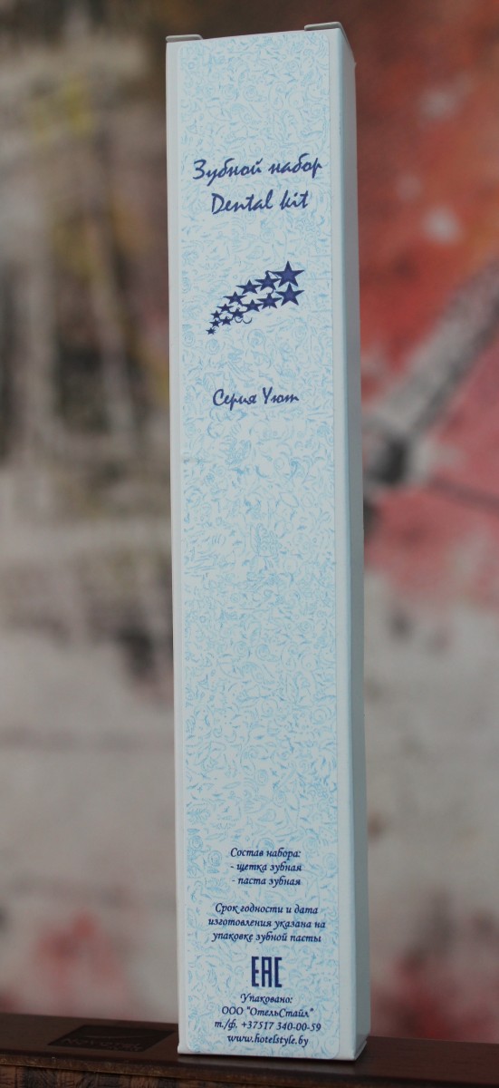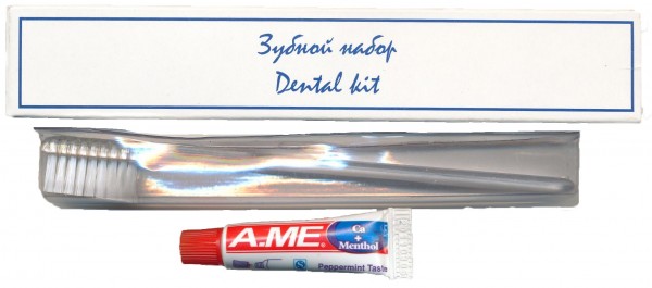 Зубной набор в картоне для гостиничных номеров.