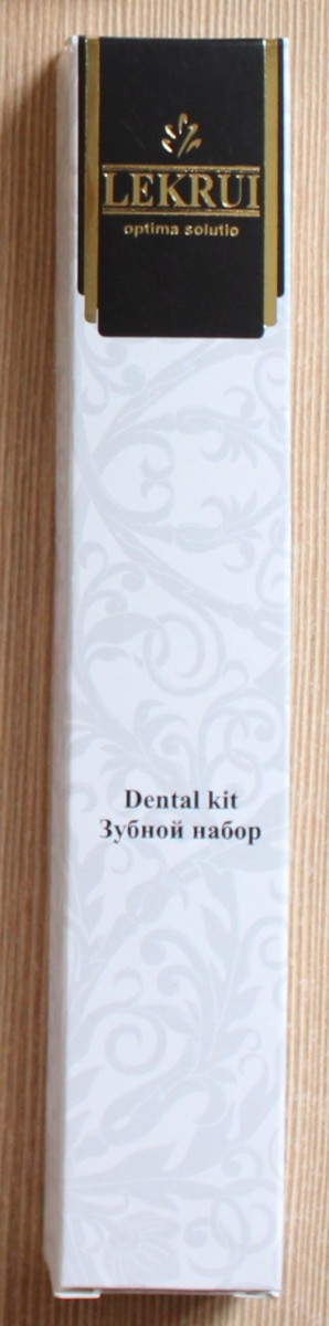 Набор для чистки зубов в картонной коробочке для одноразового применения в гостиничных номерах.